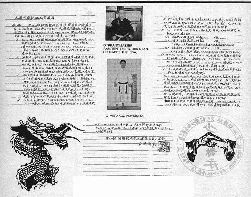 Translation of a Kuniba letter that was sent to Black Belt (Greek version) magazine in support of Albert C. Church, Jr. as Soke.