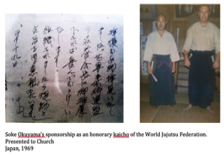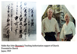 Church also had close contact and training with Okuyama Ryuho, Soke, Hakko Ryu jujutsu. The foundations that Church used for his Kamishin jujutsu training back in the United States were based on elements that Okuyama worked with him on while he was in Japan.